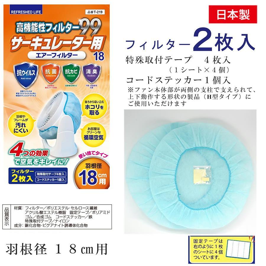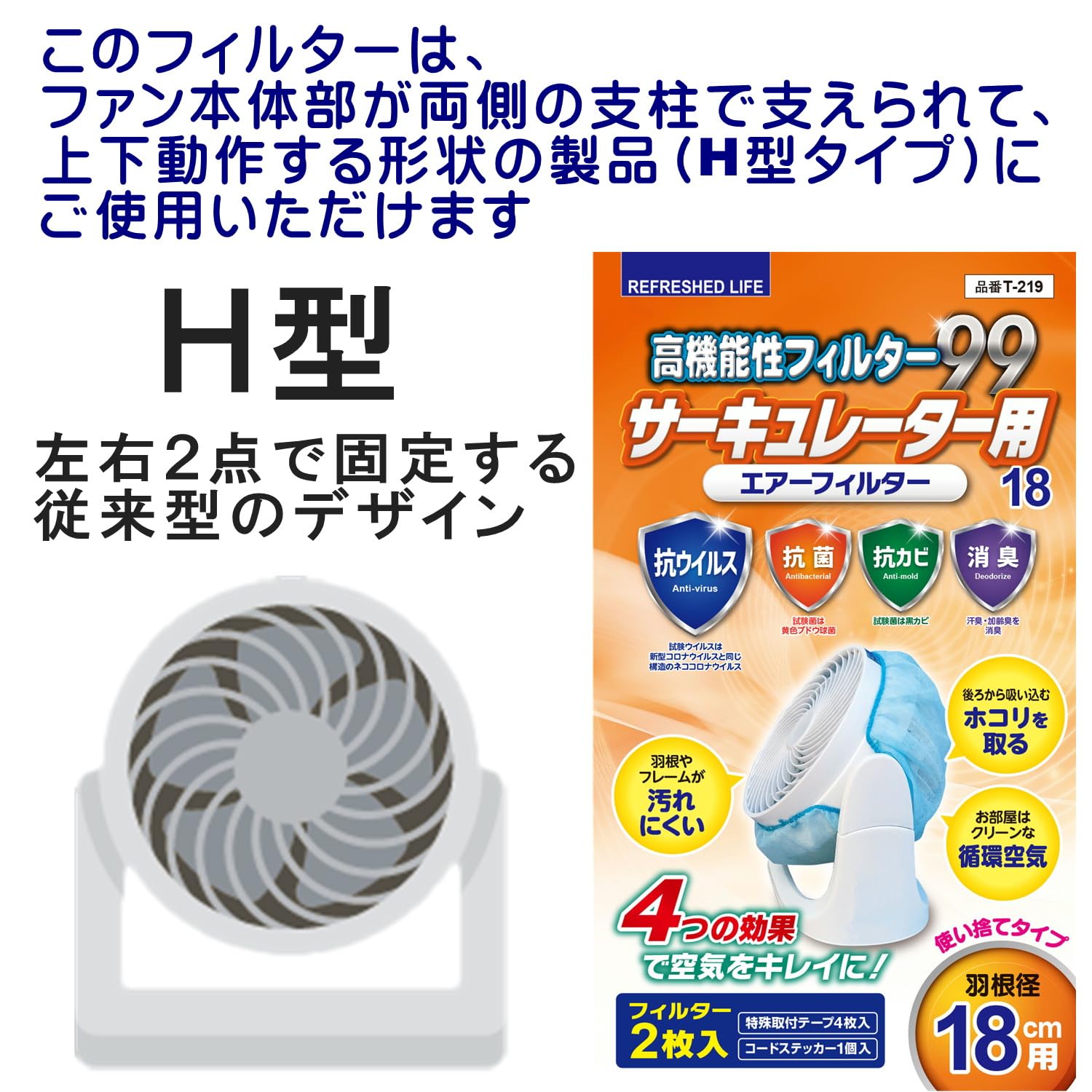 3営業日以内に発送≪新品未開封品≫:■高機能性フィルター99 サ-キュレ-タ-用 18・羽根径18㎝用・ファン本体部が両脇の支柱で支えられて、上下動作する形状の製品(H型タイプ)にご使用いただけます。・抗ウイルス・抗菌・効カビ・消臭の公的試験機関の効果評価試験のエビデンスを担保しています。・「ウイルス・雑菌・カビ」の繁殖を抑制し、安心で清潔なお部屋の空気をお届けします。「ホコリ」も防止してお掃除軽減!・抗ウイルス・抗菌・効カビ・消臭の高機能性フィルターはお部屋の空気をクリーンで爽やかに!・後ろから吸い込むホコリを取る!!羽根やフレームが汚れにくい!!お部屋はクリーンな循環空気!・ご覧頂いている商品の写真につきましては、できるだけ実物の色に近くなるように努めておりますが、お使いの環境(モニター、ブラウザ等)の違いにより、色の見え方が実物と若干異なる場合がございます。ご了承くださいませ。