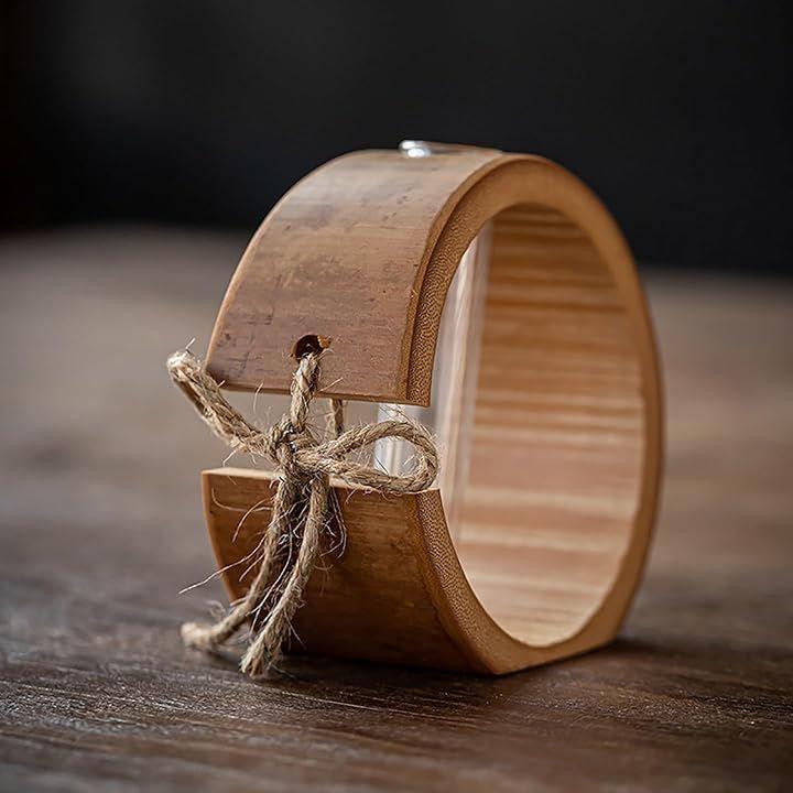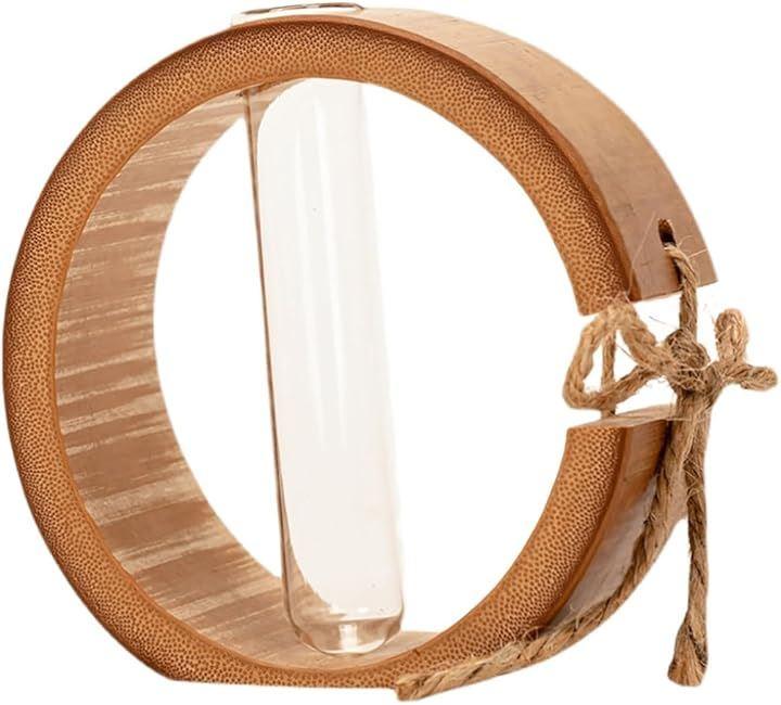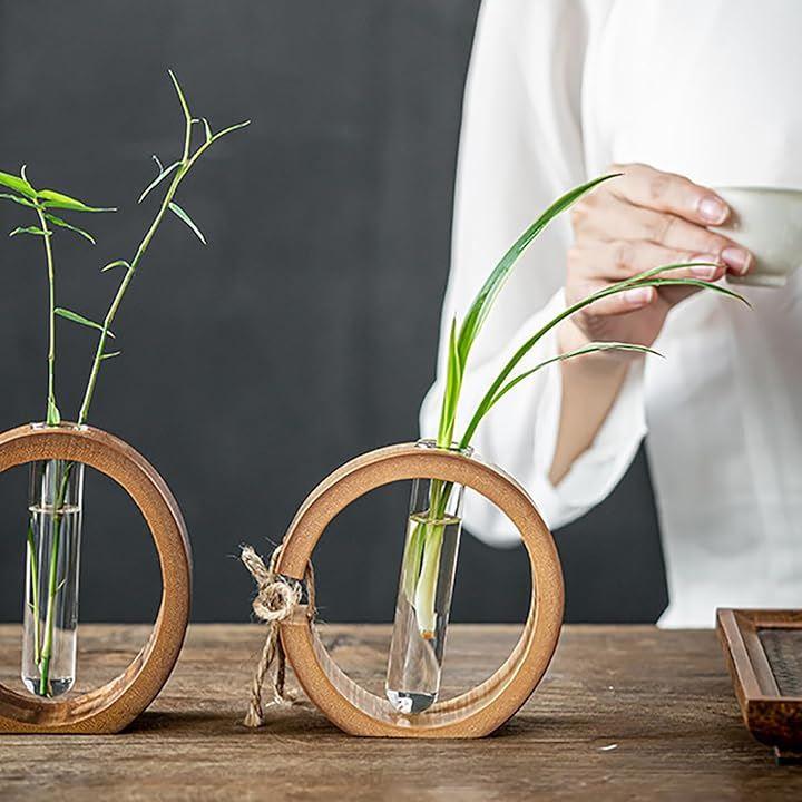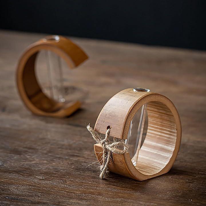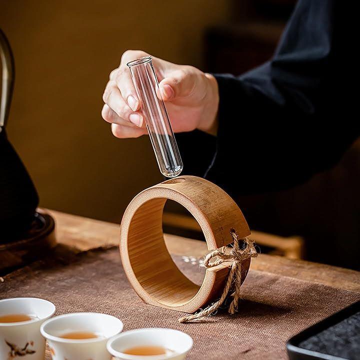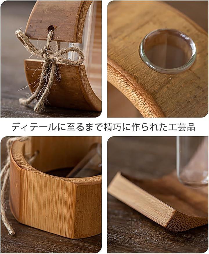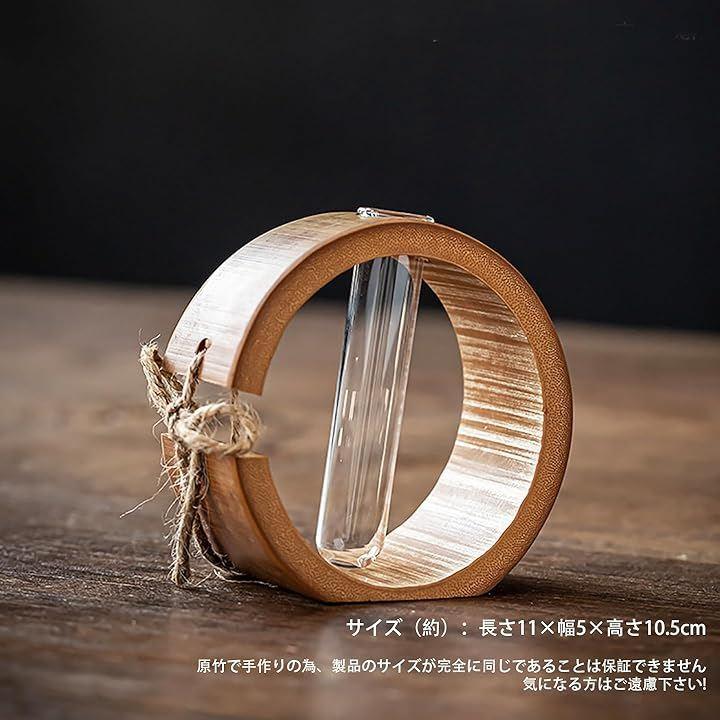 サイズ(約):長さ11x幅5x高さ10.5cm、パッケージに含まれるもの:花器セットx1(竹製フレーム+ガラス試験管)。