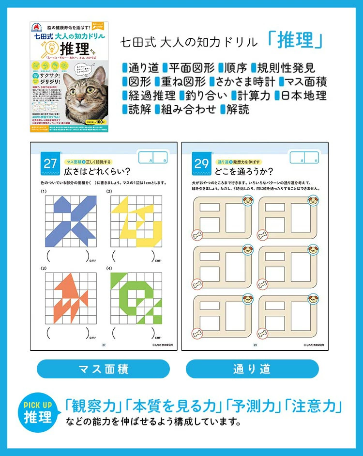 ■関連キーワード七田式 大人の知力ドリル 右脳 知恵 推理 想像 大人用ドリル 認知症 予防 脳トレ 脳活 脳活性化 脳 鍛える 認知トレーニング 知育 教材 高齢者 シニア ボケ防止 物忘れ もの忘れ 介護 父 母 祖父 祖母 敬老の日 父の日 母の日 誕生日 クリスマス お正月 プレゼント ギフト しちだしき ワークブック 迷路 間違い探し 国語 算数 パズル 問題集 シルバーバック 病院 待合室 雑誌 60代 70代 80代 還暦 定年 両親 家族 贈り物 20代 30代 40代 50代 60代 70代 80代 女性 男性 おかあさん おとうさん パパ ママ おじいちゃん おばあちゃん お爺ちゃん お婆ちゃん じいじ ばあば バースデープレゼント プチ ミニ ギフト お祝い イベント クリスマスプレゼント 単品 バラ売り