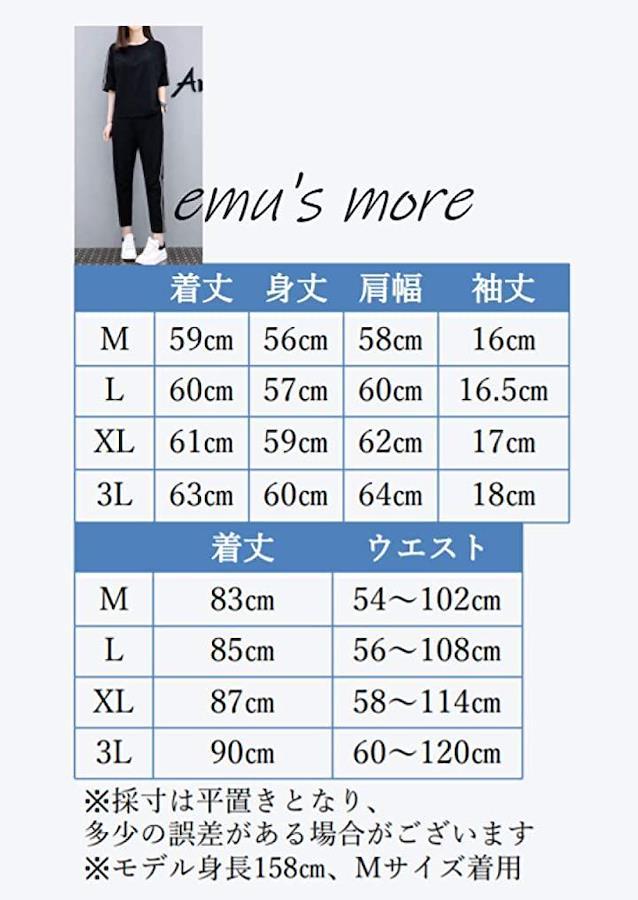 ・「サイズ」 トップス 着丈/身丈/肩幅/袖丈 M 59cm/56cm/58cm/16cm L 60cm/57cm/60cm/16.5cm XL 61cm/59cm/62cm/17cm 3L 63cm/60cm/64cm/18cm パンツ 着丈/ウエスト M 83cm/54~102cm L 85cm/56~108cm XL 87cm/58~114cm 3L 90cm/60~120cm *採寸は平置きとなり、多少の誤差がある場合がございますので、予めご了承ください *モデル身長158cm、Mサイズ着用 「洗濯について」 *色落ちする場合がございますので、他のお洗濯とは別にして、ぬるま湯での手洗いをおすすめいたします