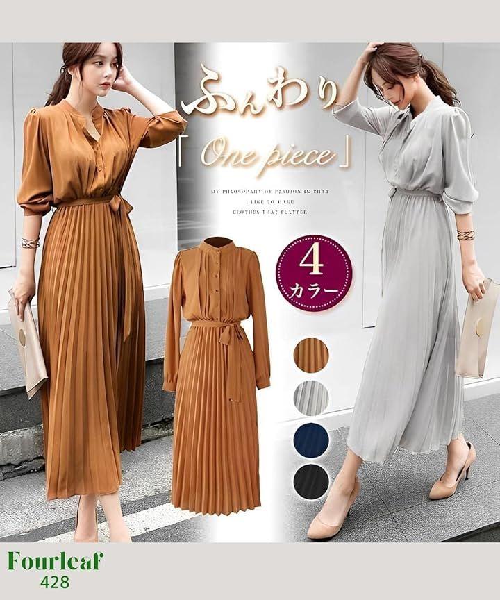 清楚系のデザインに、フリルやベルト、シフォン素材のプリーツが加わり、女性らしい可愛いらしさと華やかさが漂います。