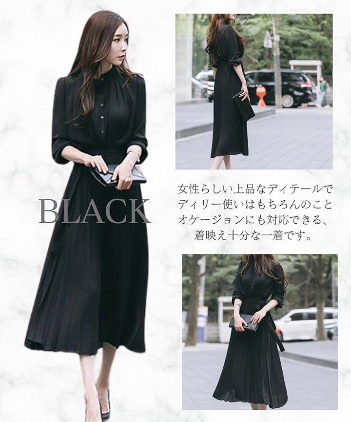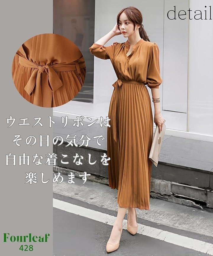 ふんわり揺れるプリーツのミモレ丈スカートが華やかさを演出してくれるさらっと着られるウエストリボンプリーツシャツワンピース。
