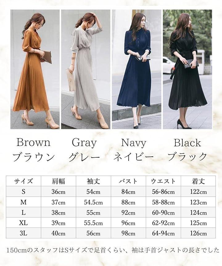 「カラー」ブラック グレー ネイビー ブラウン 「サイズ」S~2XL S 肩幅36/袖丈54/バスト84/ウェスト56-86/着丈122、M 肩幅37/袖丈54.5/バスト88/ウェスト58-88/着丈123、L 肩幅38/袖丈55/バスト92/ウェスト60-90/着丈124、XL 肩幅39/袖丈55.5/バスト96/ウェスト62-92/着丈125、XXL 肩幅40/袖丈56/バスト98/ウェスト64-94/着丈126