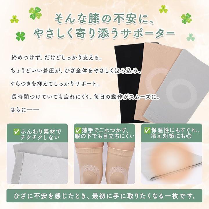 「快適な着け心地」通気性・吸湿性に優れた素材でより快適に膝をケア抗菌防臭加エを施した極薄メッショ生地はスリムパンツでも目立たず、シルエットすつきりスタイルを気にせずに保温ケアがでもます。