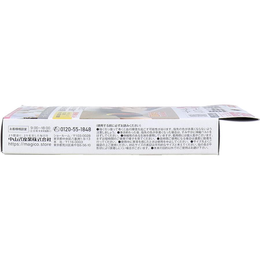 【注意】・強く引っ張って巻くと血行障害を起こす可能性があります。指先の色が赤黒くならないよう注意しましょう。・巻き終わった後、指先の色が赤黒くなった場合は、すみやかに伸縮ベルトをはずしてください。・伸縮性のある生地を使用していますが、着用感には個人差がございます。まずは短時間のご使用で様子を見てください。・長時間ご使用になる場合は適度に脱着を行ってください。・使用中に異常を感じたときは使用を中止してください。・サイズをよくご確認の上ご使用ください。対応サイズの表記は平均的なサイズと考えてください。指の長さや形状により装着しにくい場合がございます。・本来の目的以外でのご使用はお避け下さい。