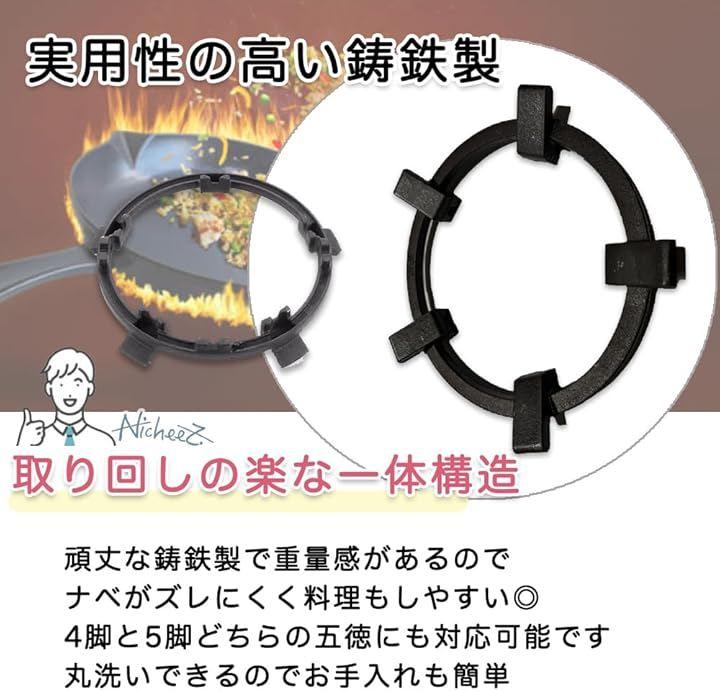 「実用性の高い鋳鉄製」頑丈な鋳鉄製で重量感があるのでナベがズレにくく料理もしやすい。 4脚と5脚どちらの五徳にも対応。