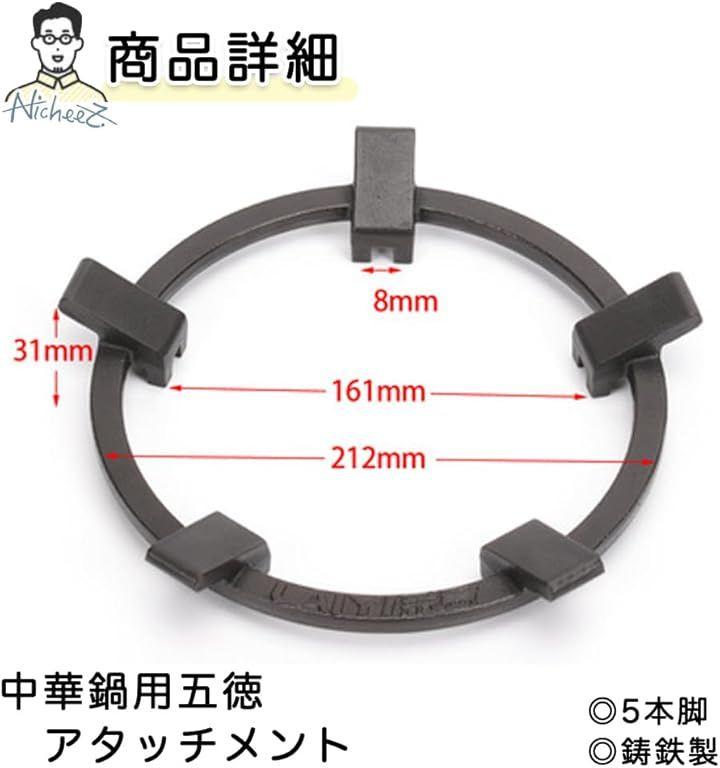 「商品内容」中華鍋用五徳アタッチメント 素材:鋳鉄 サイズ:外径/約212mm 内径/約161mm