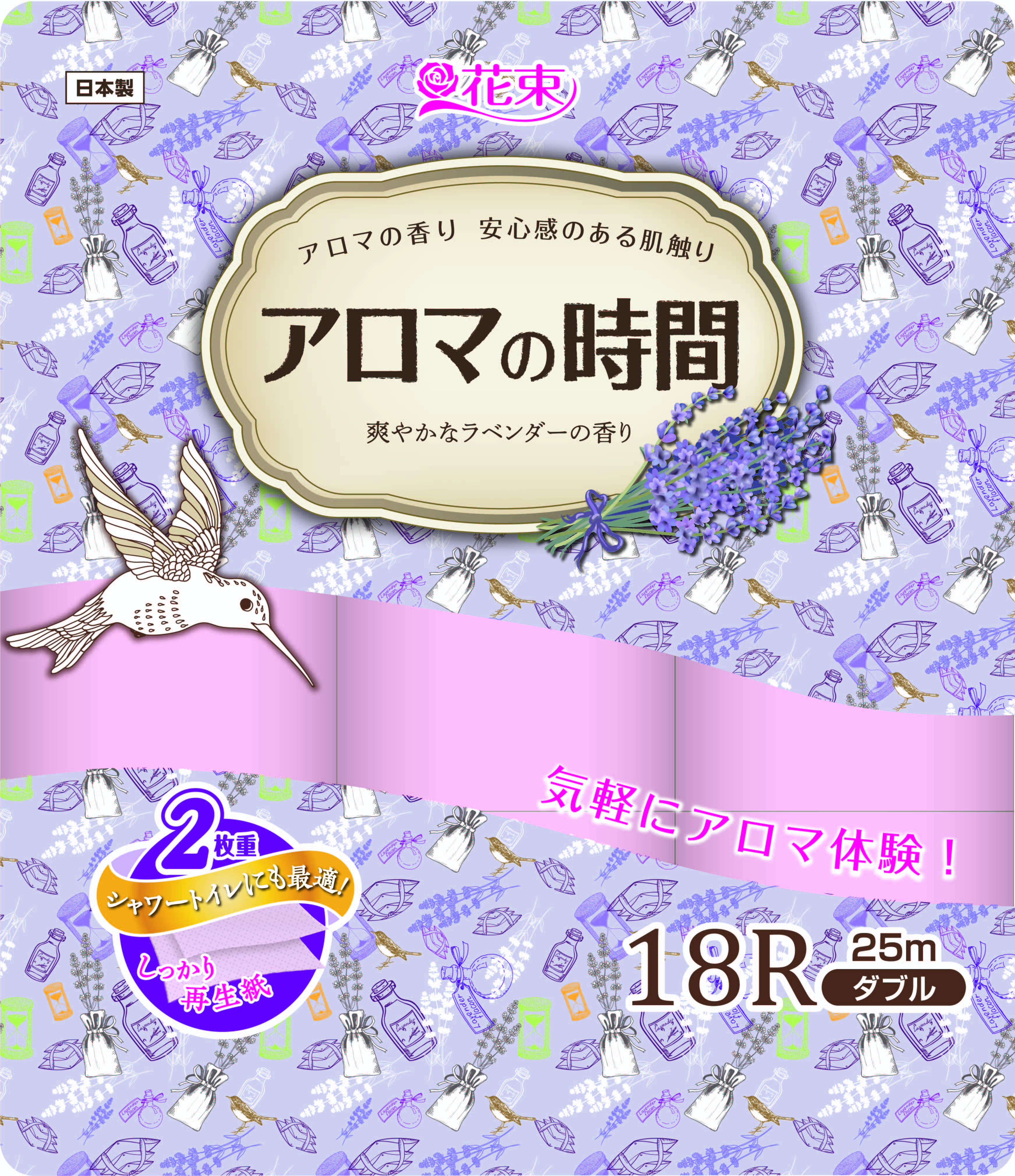 アロマブレンドの爽やかなラベンダーの香りがふわっと広がる、ダブルのピンクカラートイレットペーパーです。