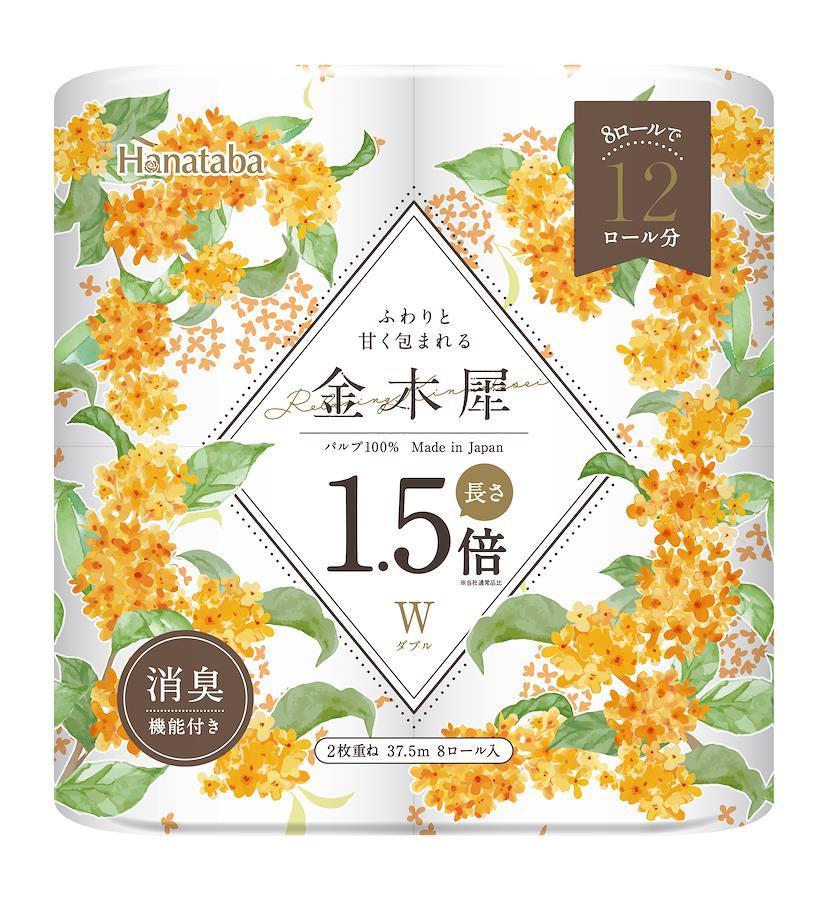 金木犀の香りがついたダブルのトイレットペーパーです。日本製。パルプ100%使用。