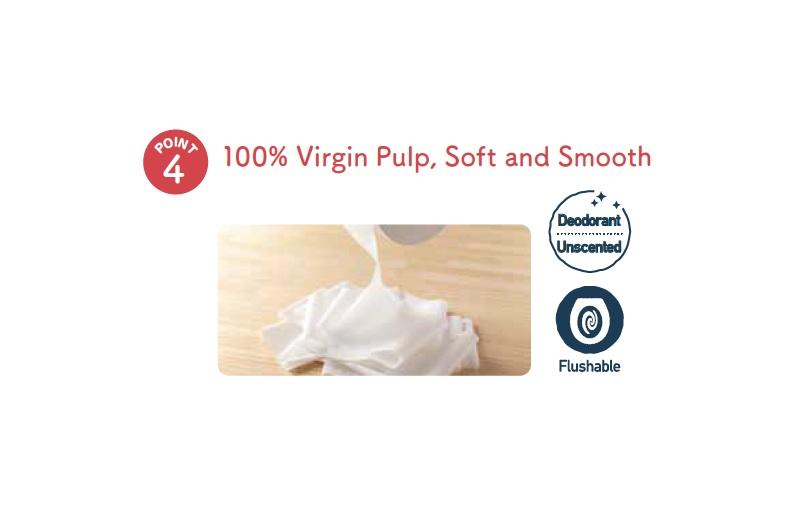 ・パルプ100%を使用した、やわらかくなめらかな肌心地です。