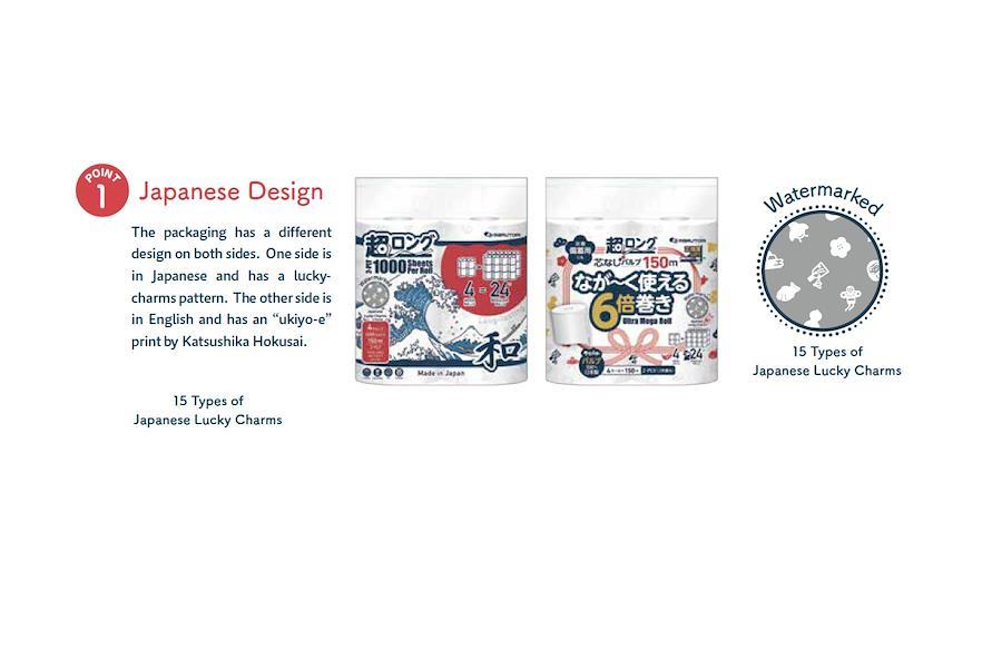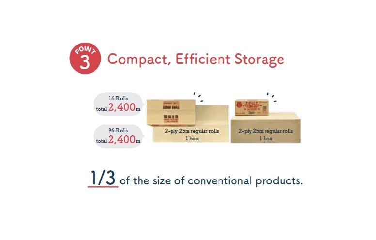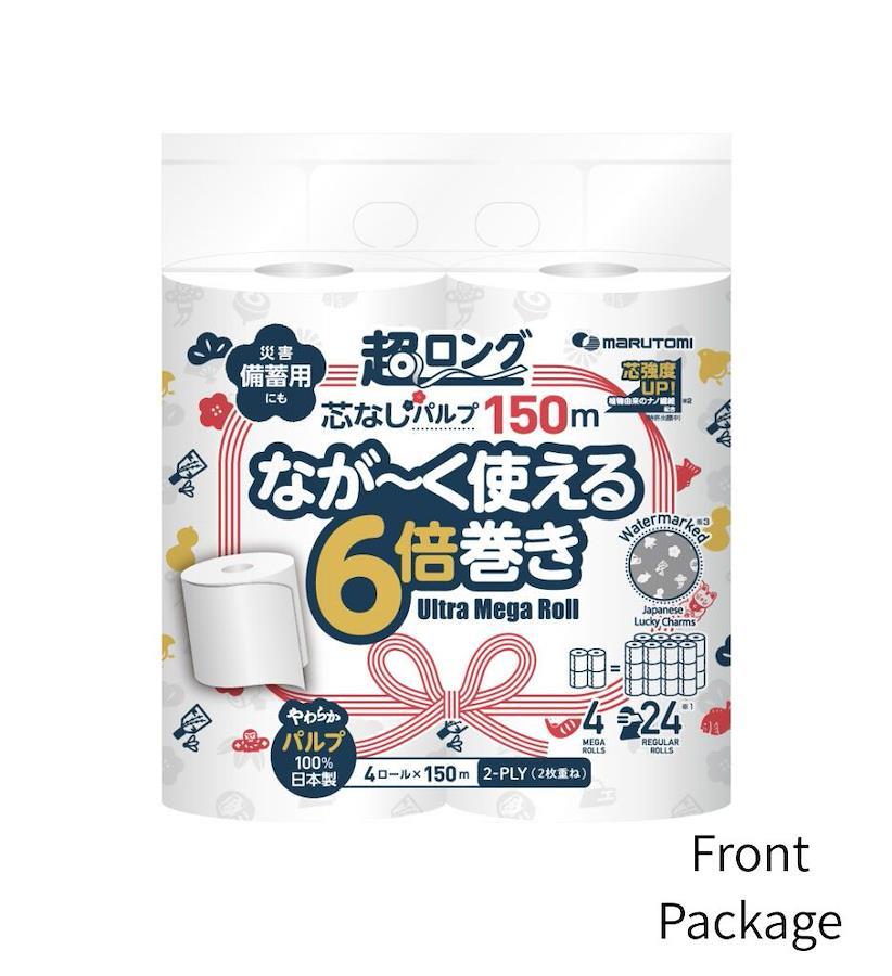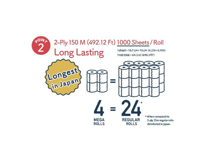 『超ロング6倍巻き』なら、たったの4ロールで一般的なトイレットペーパー(※)の長さ24ロール分に相当します。