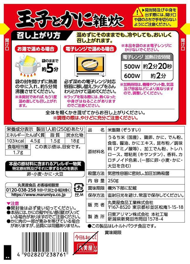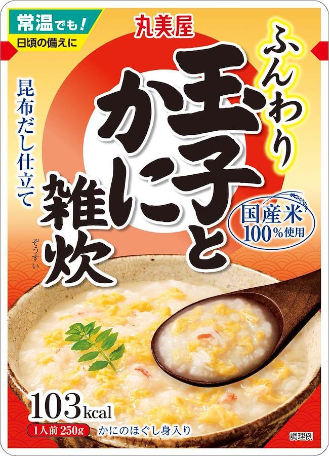 ・国産米を100%使用。粒感が残るようにふっくらと炊き上げ、口当たり良く仕上げました。・だしの旨味がしっかりと味わえる、ふんわり玉子がたっぷり入った雑炊なので、普段の食事にも大活躍。・温めなくても食べられるので常備食としても便利です。・常温保存可能なので、家庭内備蓄にも活躍します。・ふんわり玉子&かにのほぐし身入りの、昆布だし仕立ての雑炊です。かにの風味と旨味が味わえます。