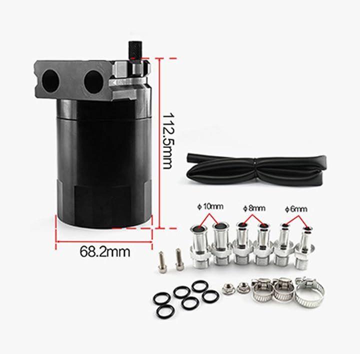 「パッケージ内容」1x 300ml オイルキャッチタンク/2x OD:10mmボルト(ID:6mm)/2x OD:12mm ボルト(ID:8mm)/2x OD:14mm ボルト (ID:10mm)/1x OD:直径10mmホース(長さ:750MM)/ホースバンド/6xОリング/取り付け用金具