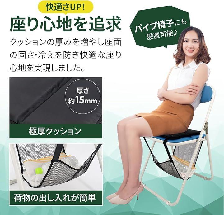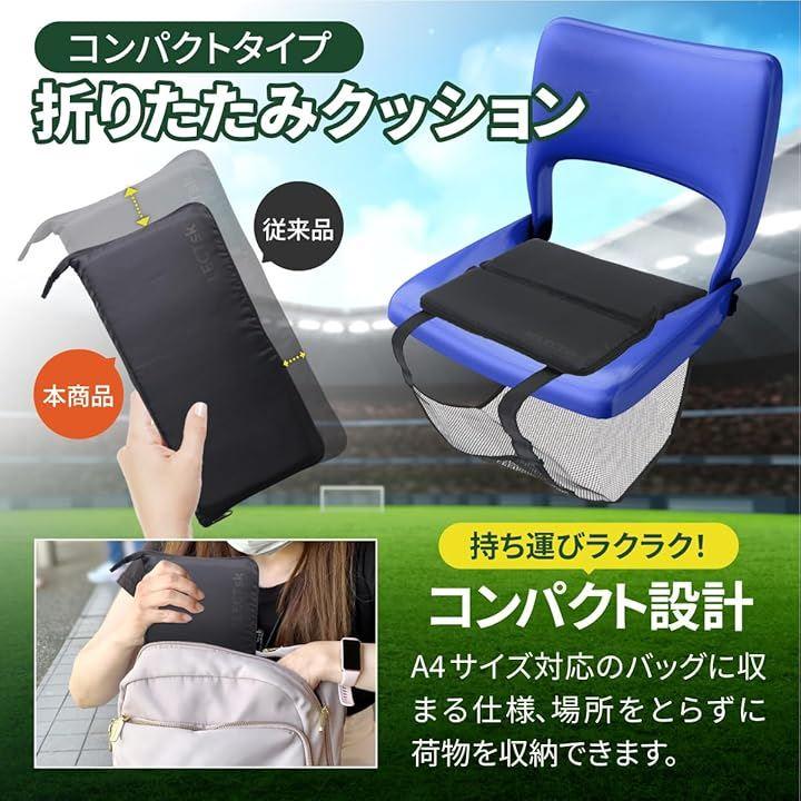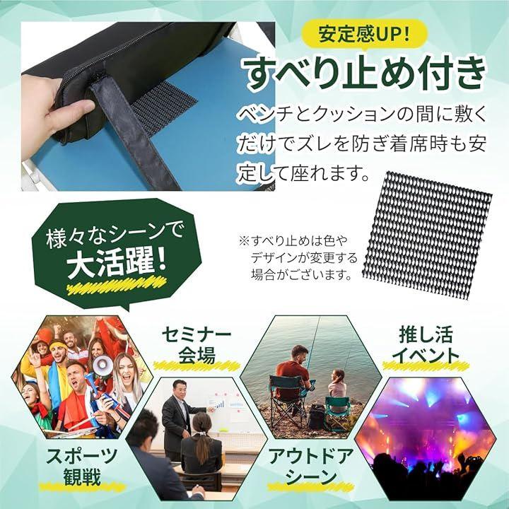 本商品はスタジアムのベンチだけでなく、アウトドアチェア・パイプ椅子・旅客機シートなど様々な場所で使える汎用性の高さも魅力の1つです。