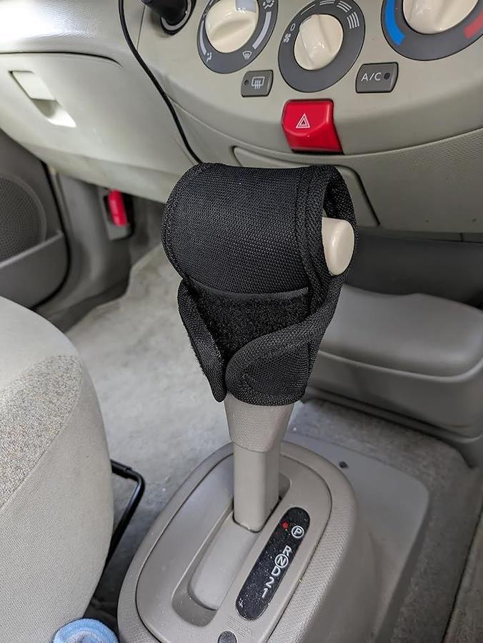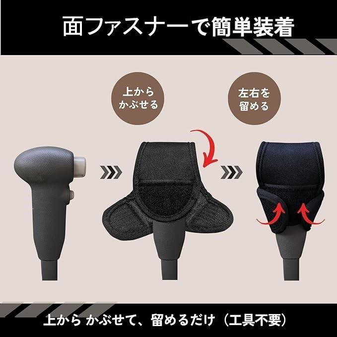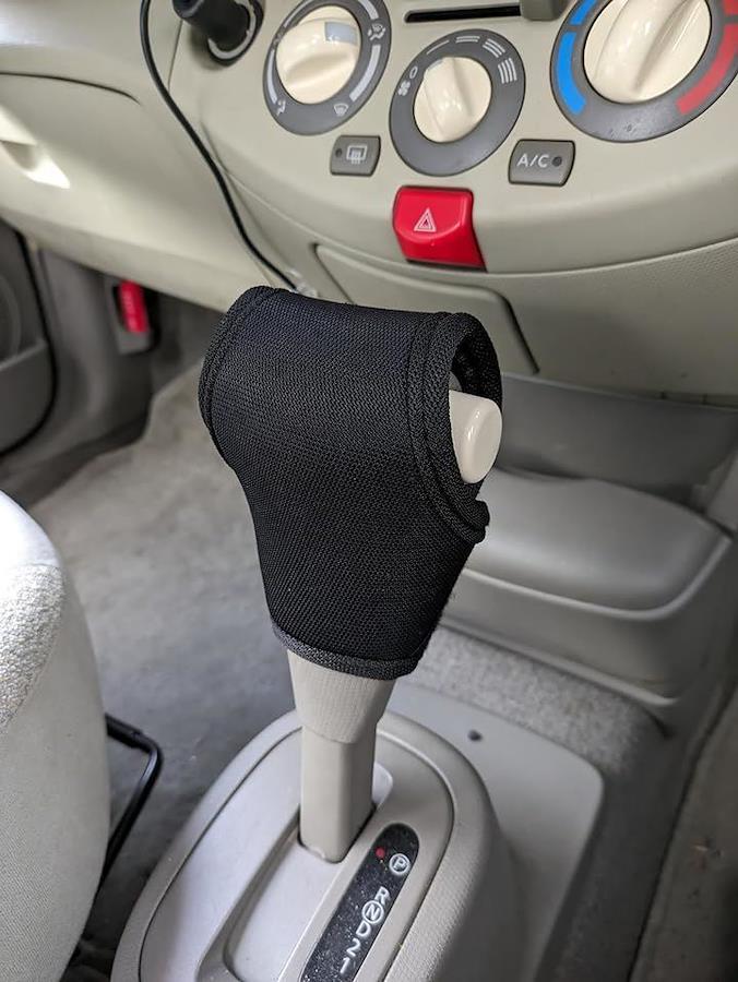 取付け方法は、シフトノブに巻き付けてテープで固定するだけの簡単装着です。