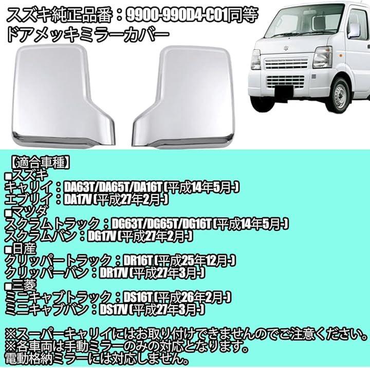 ・素材 プラスチック メッキ加工 ・取付方法 両面テープ ・スズキ型番汎用 9900-990D4-C01同等 ・対応 手動ミラー 電動格納ミラー対応不可になります。
