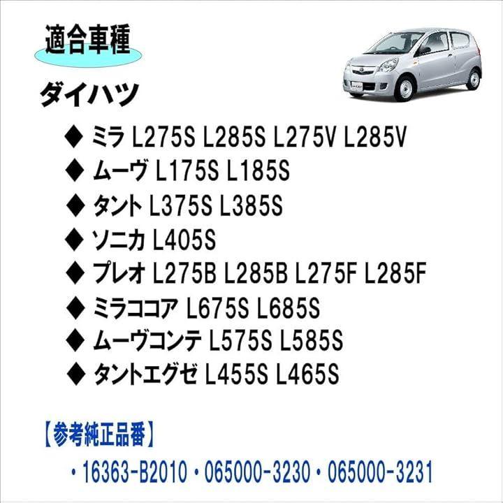 「商品内容」・本体 1個 (配線/コネクター付属)「カラー」・ブラック「対応車種」 ダイハツ: * ミラ L275S L285S L275V L285V * ムーヴ L175S L185S * タント L375S L385S * ソニカ L405S * プレオ L275B L285B L275F L285F * ミラココア L675S L685S * ムーヴコンテ L575S L585S * タントエグゼ L455S L465S「参考純正品番」・16363-B2010 ・065000-3230・ 065000-3231