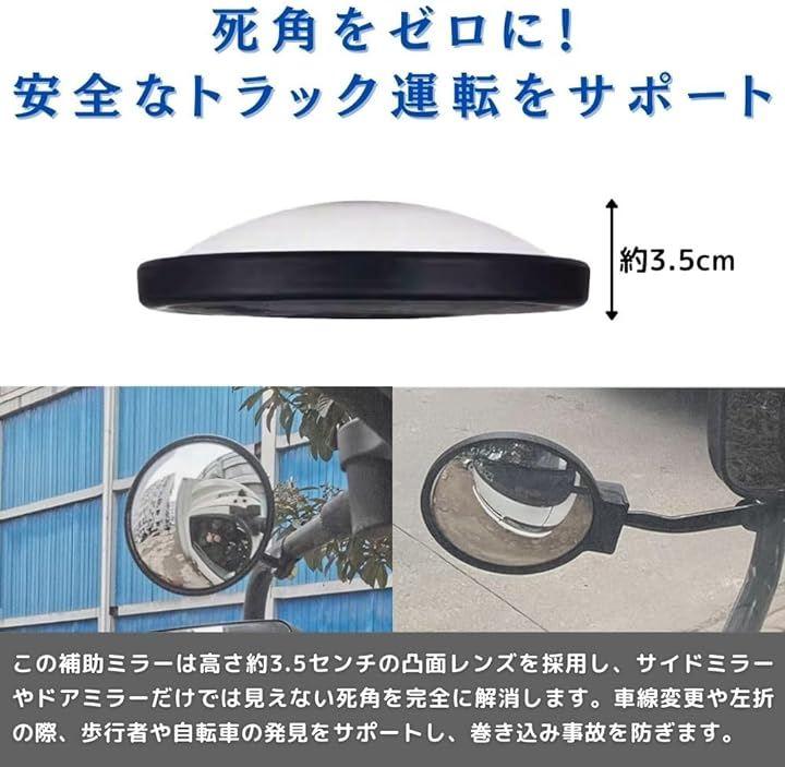 この補助ミラーは高さ約3.5センチの凸面レンズを採用し、サイドミラーやドアミラーだけでは見えない死角を解消します。