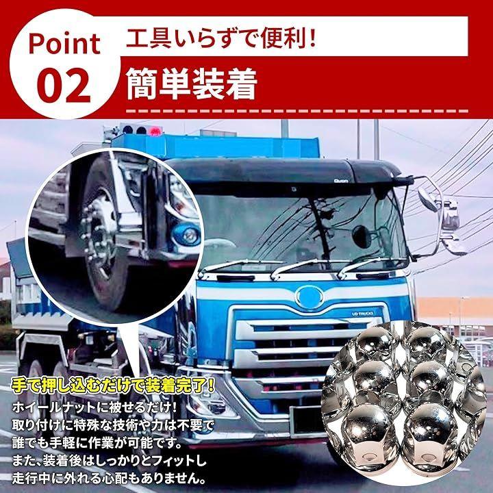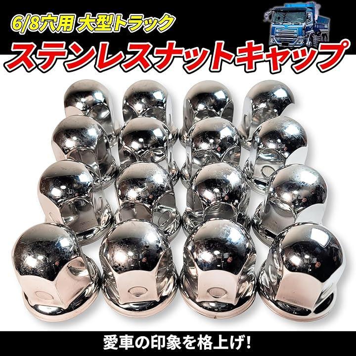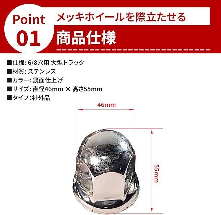 商品仕様 : ・タイプ:6/8穴用 大型トラック ・材質:ステンレス ・カラー:鏡面仕上げ ・サイズ:直径46mm x 高さ55mm