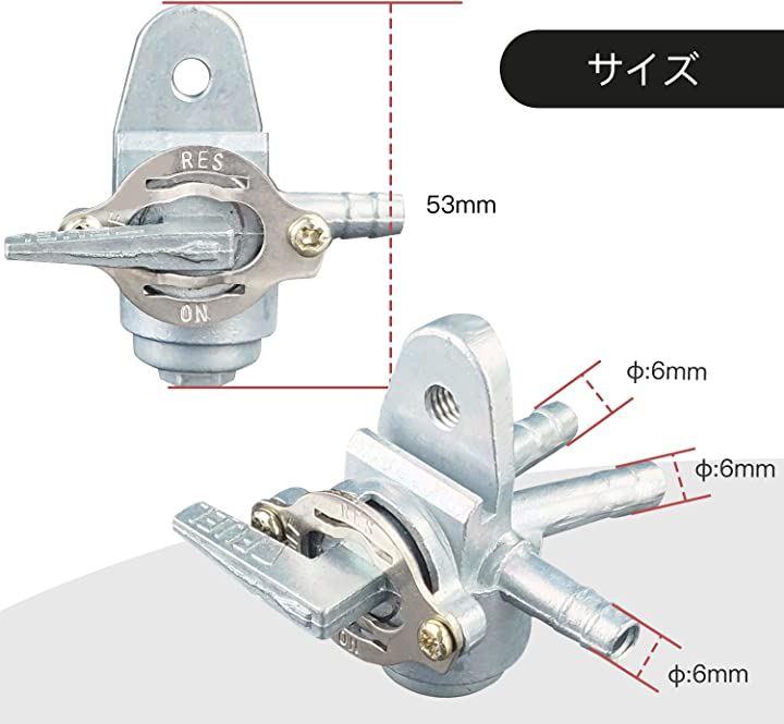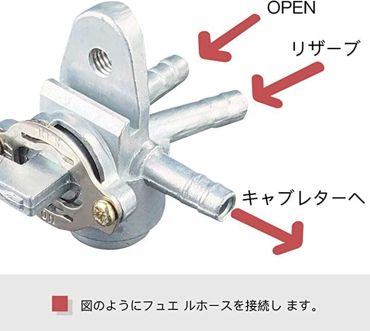 「適合車種」リザーブ側にメクラをすればカブカスタムなどのガソリンラインが1本の車種にも使用可能。