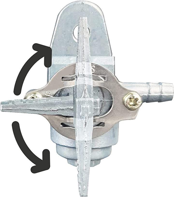 ここにON(流入)、OFF(流入止め)、RES(リザーブ・燃料が残り少ないときの切り替え)の各位置を選べるレバーが付き、その都度切り替えて使用するものです。