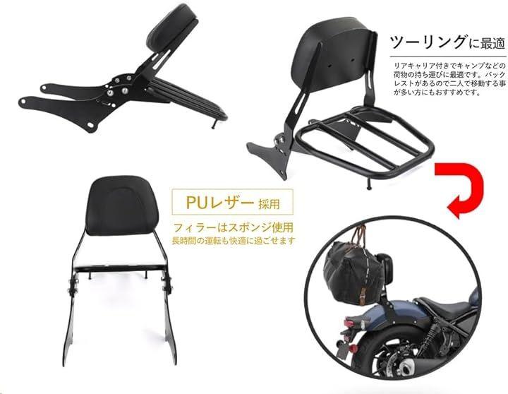 「適合車種」ホンダ 用 CMX300 CMX500 専用設計・レブル 500 Rebel 500 2017-2020・レブル 250 Rebel 250 2017-2020 ・レブル 300 Rebel 300 2017-2020「商品仕様」・材質:スチールブラケット+ PUレザー・カラー:ブラック・装着位置:リア・セット内容:シーシーバー (バックレスト & リアキャリア付き ) x1