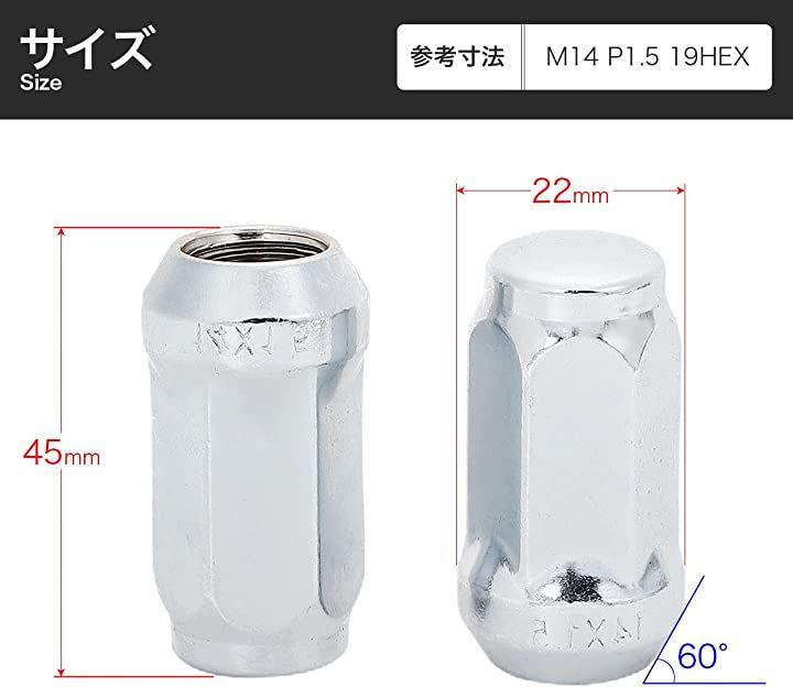 ・v「セット内容」:ホイールナットx25個、オリジナルマイクロファイバータオルx1☑「製品仕様」:M14 P1.5 19HEX、全長45mm、テーパー角度 60度