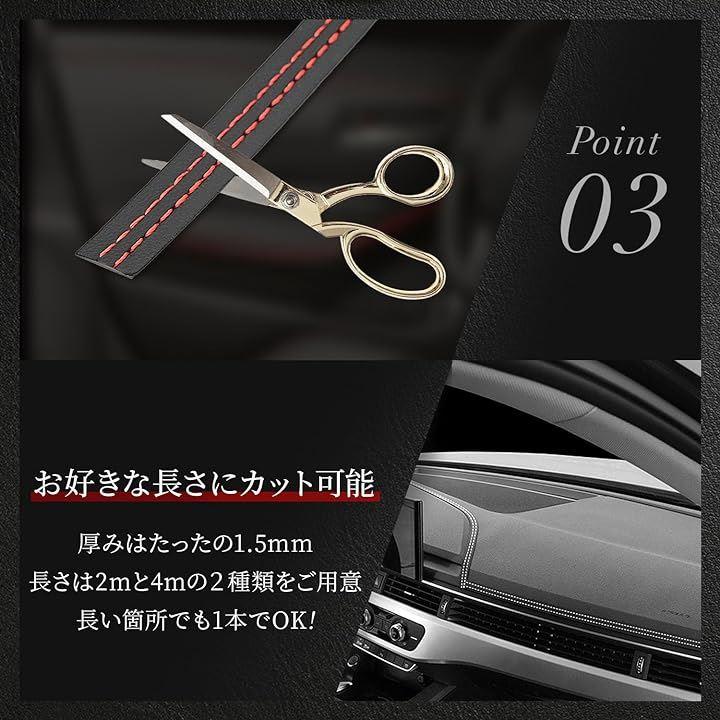 カーインテリアレザーステッチやダッシュボード/インテリアパネルなどの装飾に利用できる汎用性の高いアイテムです。