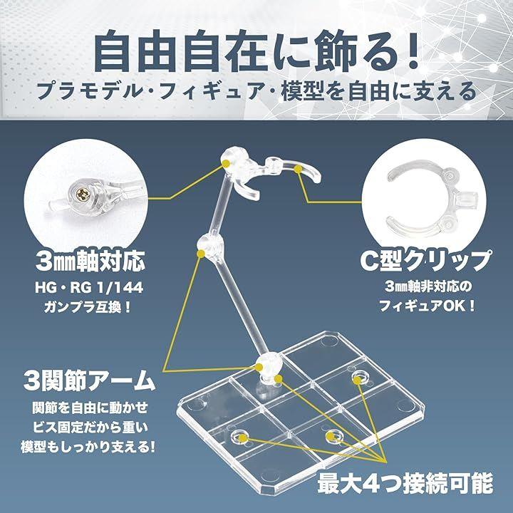 ・透明クリアカラーの汎用ディスプレイスタンドでプラモデル、フィギュア、模型を支えます。