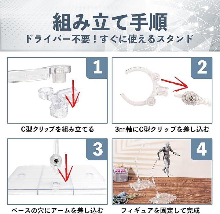 ・C型クリップが付属し3mm軸に対応していないフィギュア、ドールにも。
