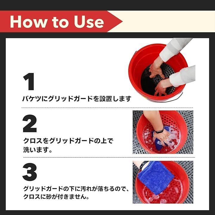 「効率的な洗車」グリットガードを使用することで、バケツ内の汚れをしっかりキャッチし、洗車中に再び車体に汚れが付着するのを防ぎます。