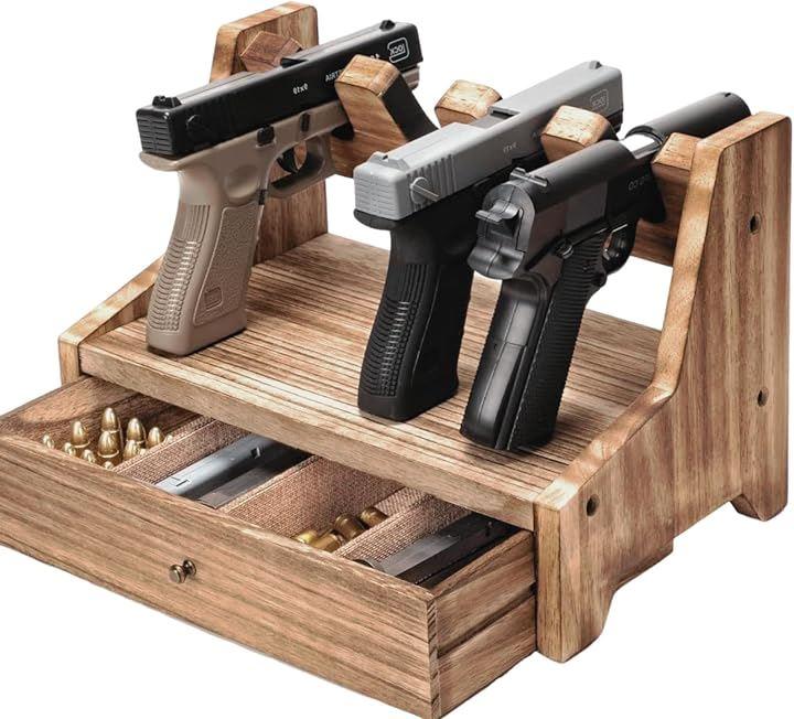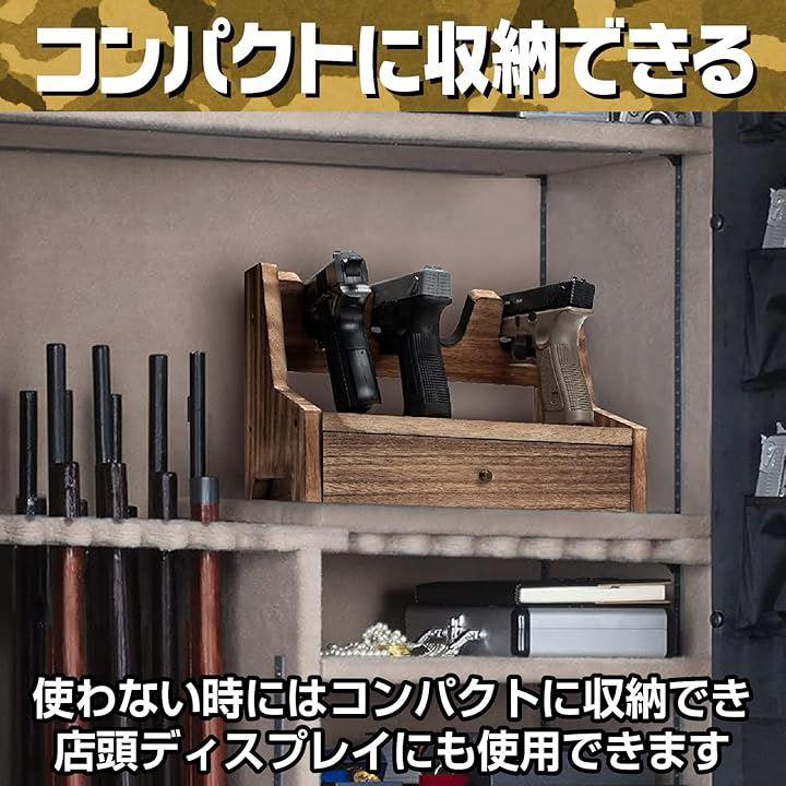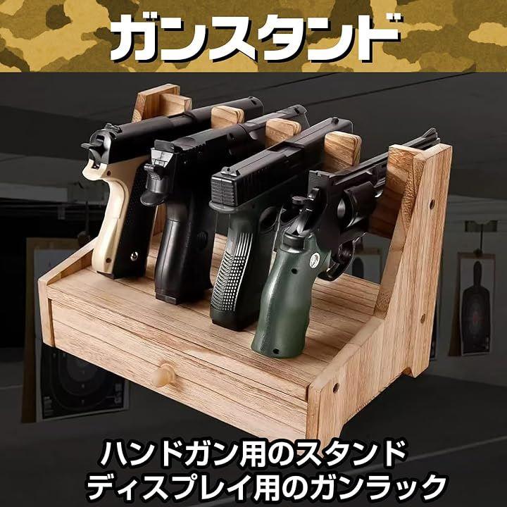 「コレクションを美しく展示する4丁収納の桐製スタンド」大切なモデルガンを整然と展示できる4丁収納のガンラック。