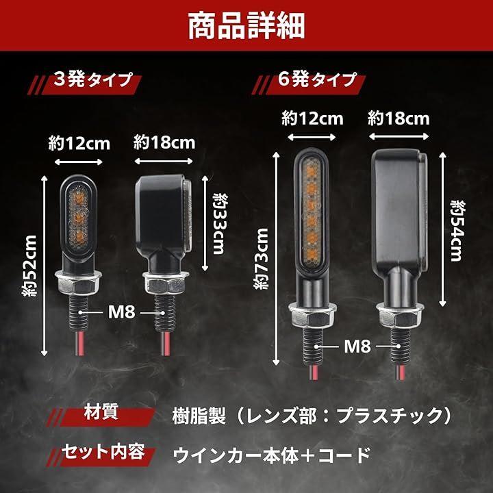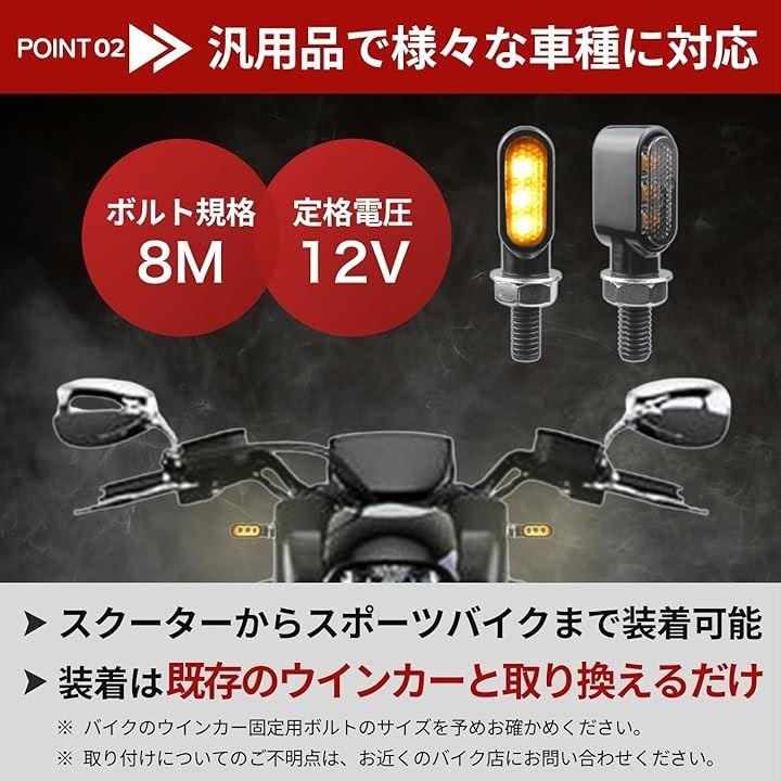 「愛車の個性を引き立てる。高視認性LEDバイクウインカー」あなたのバイクにさらなる安全性とスタイルをプラス。このLEDバイクウインカーは、スモークレンズとアンバー発光が特徴。