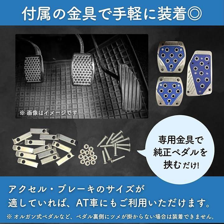 専用付属金具を使って純正ペダルを挟むだけで、すぐに装着してスポーティーな雰囲気を楽しむことができます。