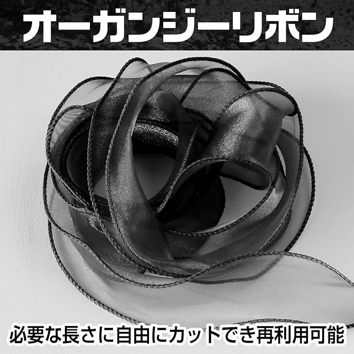 オーガンジーリボン、幅4cmx長さ10M、ナイロン、ブラック*モニターの環境により、色の見え方に若干差が生じる場合がございます。