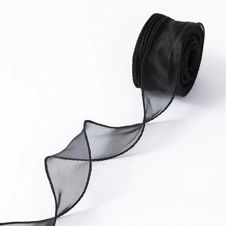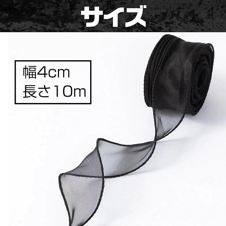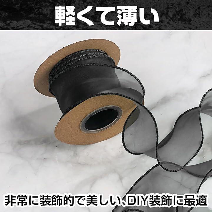 ラッピング、ウェディング、パーティーの装飾、DIY、手芸、ヘアアクセサリーなど汎用性の高いブラック、幅4cm、大容量10M、縁のナイロン糸で成形も簡単で使いやすい。