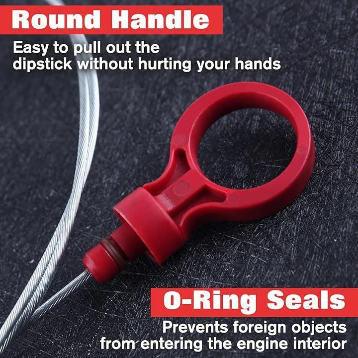 「ハンドルとOリングシール」ディップスティックの上部には、プラスチック製の円形のハンドルがあり、握りやすく、簡単にディップスティックを抜き差しすることができます。