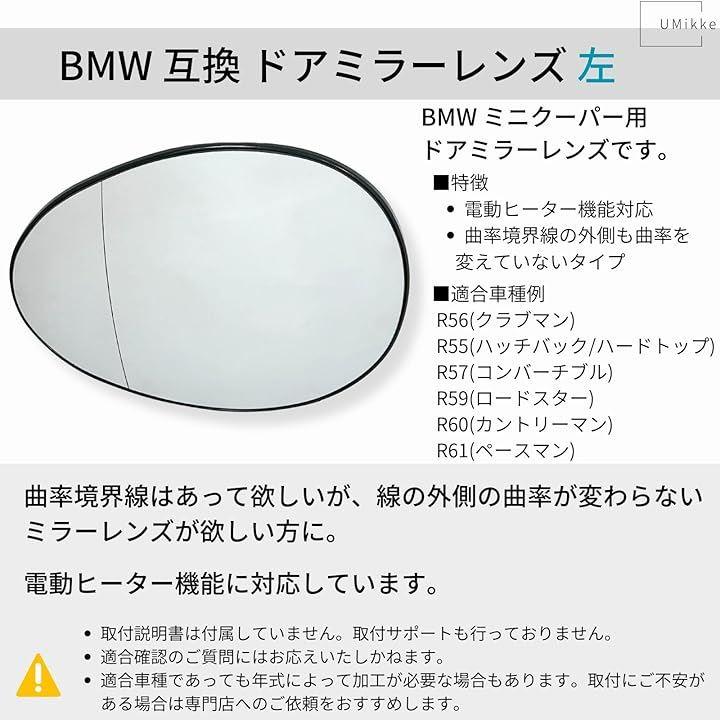 BMW/MINI、ミニクーパー互換のドアミラーガラスレンズです。