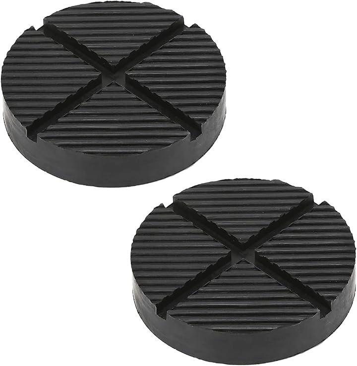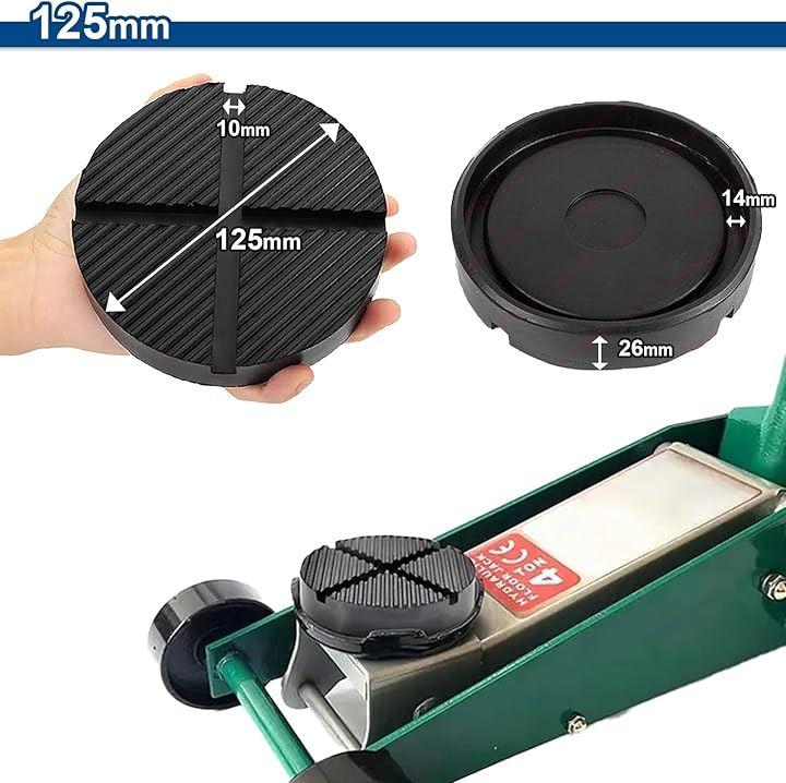 「滑りを防止」このゴムパッドは、素材の適度な硬さが車体をしっかりと支え、中心にある溝がガレージジャッキ使用時の滑りのリスクを軽減します。