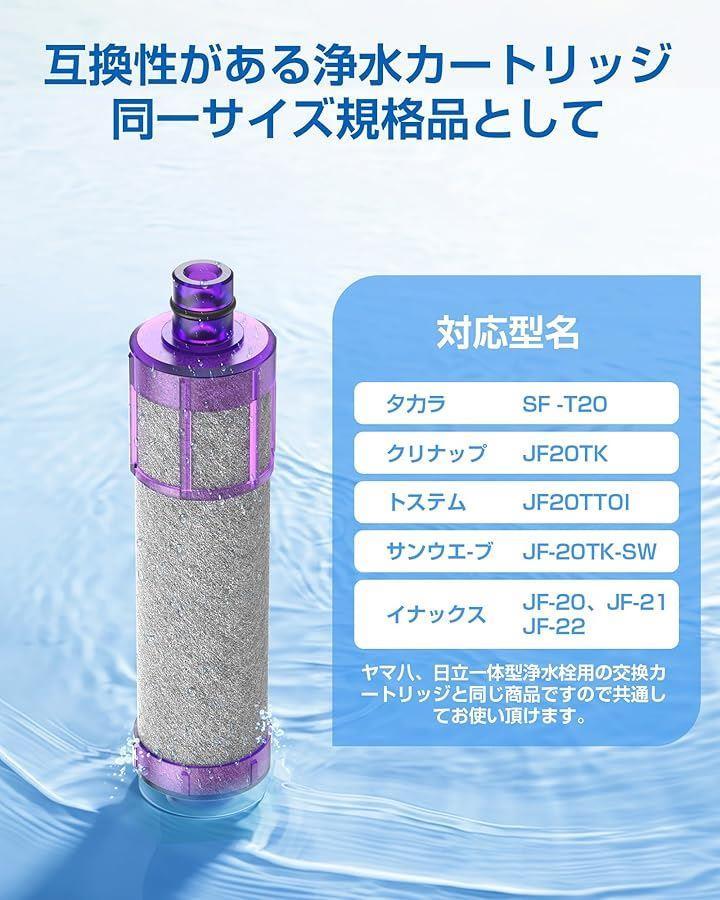 「対応機種&互換性」この浄水器カートリッジはJF-22-T対応のオールインワン浄水栓交換用カートリッジで、eモダンタイプ、FSタイプ、FNタイプ、壁付タイプなどにも対応。