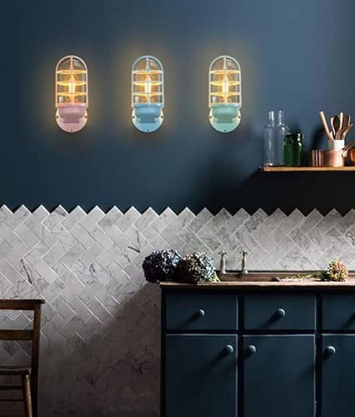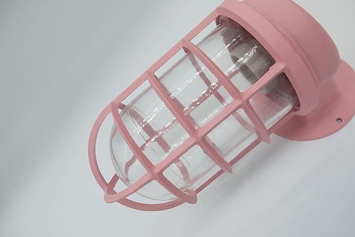 ピンクの工業風防水船舶ウォールライトは屋外照明に理想的な選択肢です。