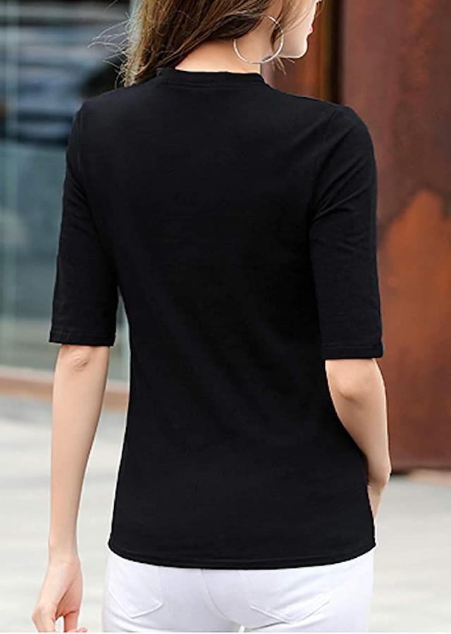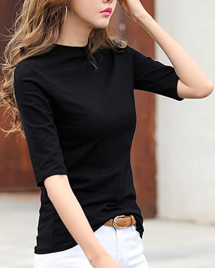 肘までの五分袖が二の腕をスッキリ見せてくれます。