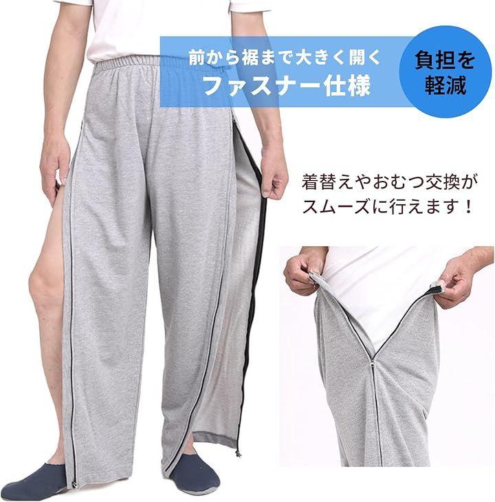 前から裾まで大きく開くファスナー仕様で、着替えやおむつ交換がスムーズに行え、介護する方とされる方の負担を軽減します。