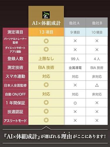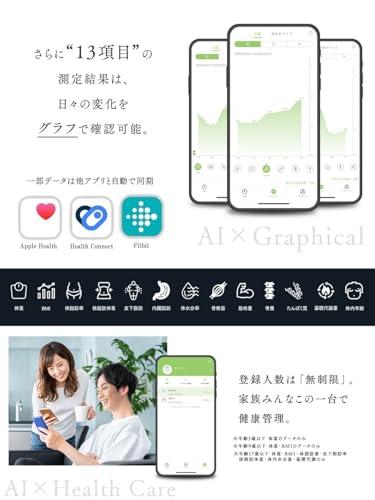 【トレーナー全面監修】 AIと体重計を掛け合わせたボディスケール 【弊社専用アプリ「AI×Scale」とデータ同期可能】スマートフォンと連動し、データ同期、体組織計をスマホと連携して、測定データがアプリへ自動転送&記録される。 【操作簡単、多項指標測定】体重 計に乗るだけで、13種類の健康項目(体重、BMI、体脂肪率、除脂肪体重、皮下脂肪、内臓脂肪、体水分率、骨格筋、筋肉量、ミネラル、タンパク質、基礎代謝、体内年齢)※13項目のデータはアプリ上でご確認いただけます。体重計本体には体重のみの表示となります。 【電池式/操作簡単】体組成計に乗るだけで自動的に電源をオンになり、測定後体重計から降りると自動でオフになるヘルスメーターです。 【コンパクト、パッケージ内容、保証期間】シンプル&おしゃれなデザインで、コンパクトなサイズで収納が可能な一台です。パッケージ内容:本体、単四電池、日本語取扱説明書。ご購入した日より1年間、商品の品質の問題だけではなく、ご使用する際、何かご質問がございましたら、カスタマーサポートに、お気軽に連絡してください。