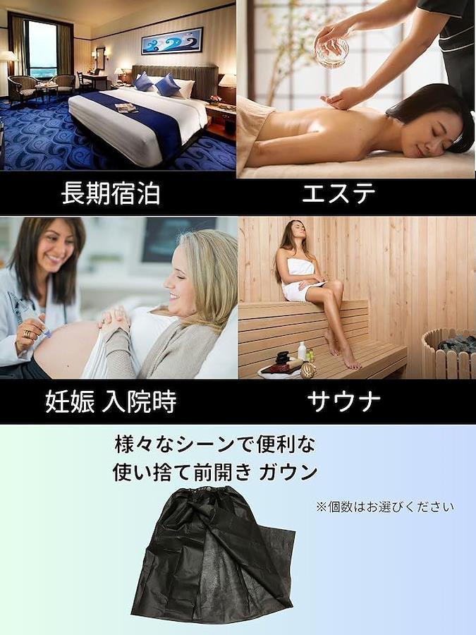 さまざまな用途に対応し、衛生的な使い捨てガウンは療養、介護、出産入院や、洗濯できない、長期の旅行やキャンプなどにもお使いください。