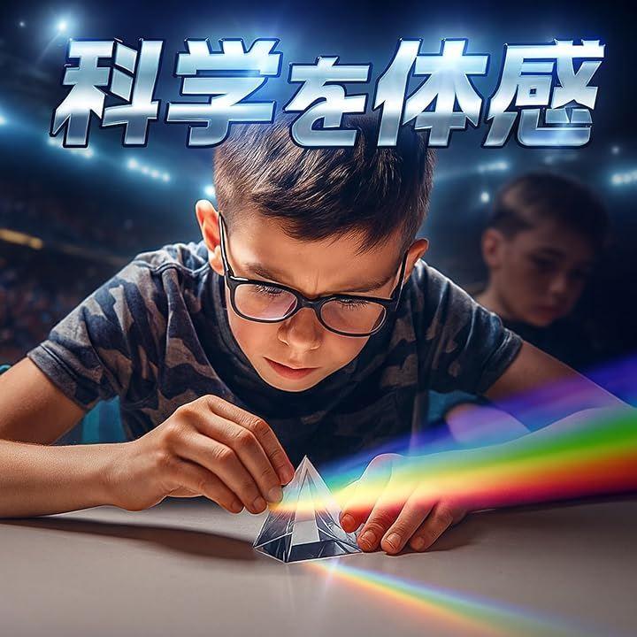 プリズムを光にかざすと、肉眼で美しい虹のスペクトルが広がり、屈折や反射・分散といった基礎科学を楽しく体験できます。