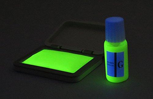 イベントでのお客様の再入場管理のスタンプとしてオススメ!紙に捺しても見えないブラックライトインク【カラー】透明(乳白色)・水性(人肌用ではない)※ブラックライト照射で緑色に発光します【セット内容】再入場スタンプインク10ml、シャチハタ塗布用スタンプ台小型 サイズ63mm×40mm(外寸77mm×56mm×16mm)、確認用ブラックライト確認用のブラックライトは手のひらサイズだから持ち運びに便利!動作確認用電池付(CR2016、2個)【確認用照明】日亜化学工業製のUV-LED(NSPU510CS)を使用したブラックライト(375nm)