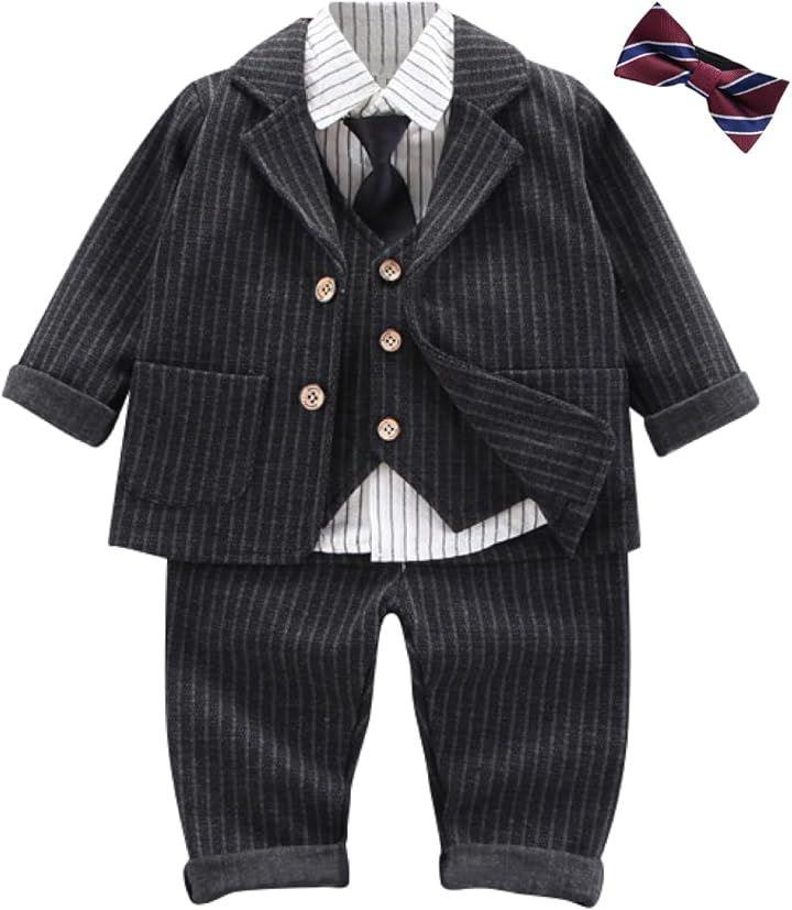 「フルセットで手間いらず」スーツ上下・ベスト・白シャツ・ネクタイ・蝶ネクタイの6点セットでコーデ完成。