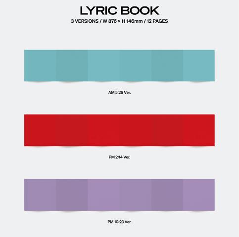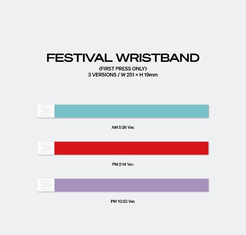 Track List‐追って発表‐仕様-計3種類-OUT BOX : 各バージョン1種類 / W158 X H161 X D36 (mm)-PHOTOBOOK: 各バージョン1種類 / W150 X H150 (mm) / 80 Pages-LYRIC BOOK: 各バージョン1種類 / W876 X H146 (mm) / 12 Pages-FESTIVAL WRISTBAND : 各バージョン1種類 / W251 X H19 (mm) *初回限定-PAPER ART KIT : 各バージョン4-5種類 / W149 X H149 (mm)-STICKER :各バージョン13種類のうちランダム1種類封入 / W80 X H80 (mm)-PHOTOCARD: 各バージョン26種類のうちランダム2種類封入 / W55 X H85 (mm)-MINI CARD : 各バージョン13種類のうちランダム1種類封入 / W55 X H85 (mm)-CD-R: 各バージョン1種類-FOLDED POSTER: 各バージョン1種類 / W438 X H292 (mm) *初回限定※初回特典は数量に達し次第終了します。お気軽にお問い合わせください。