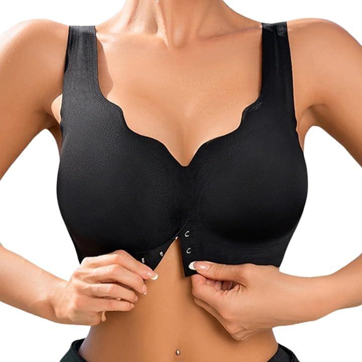 「「快適着心地」と「前あき」の融合。」トレンドのシームレスブラジャーが「前あきタイプ」で登場。ノンワイヤーで優しく包み込むハーフトップが、接触冷感・吸水速乾で快適着心地。暑い時期はもちろん、アウターで蒸れやすい寒い時期も快適です。